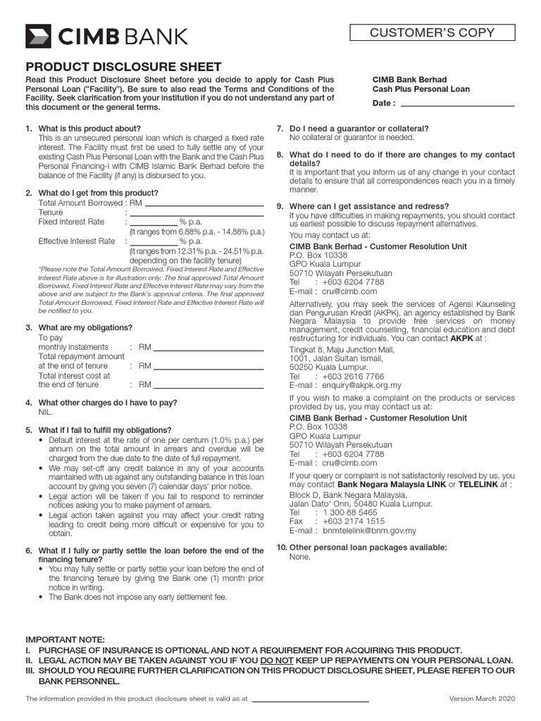 Cimb Cash Plus Personal Loan Pdf Unsecured Debt Interest